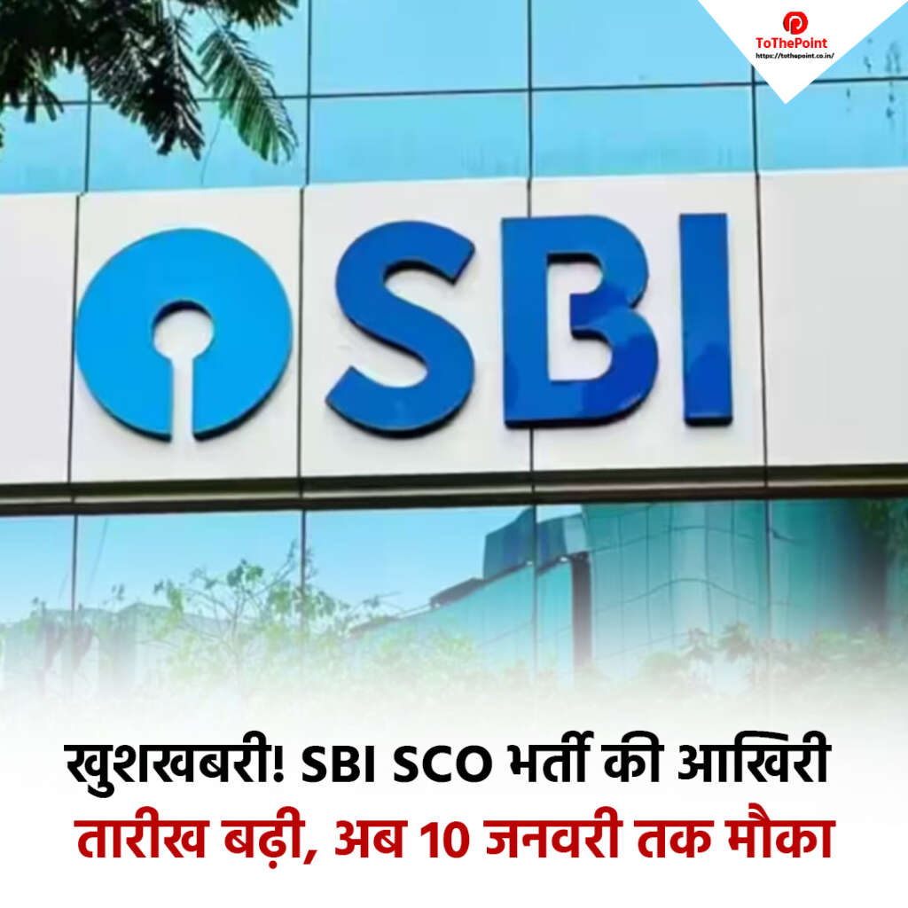 खुशखबरी! SBI SCO भर्ती की आखिरी तारीख बढ़ी, अब 10 जनवरी तक मौका