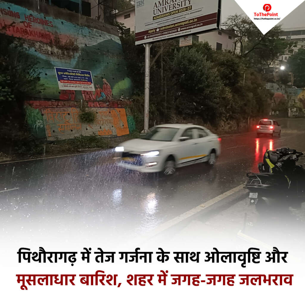 पिथौरागढ़ में तेज गर्जना के साथ ओलावृष्टि और मूसलाधार बारिश, शहर में जगह-जगह जलभराव