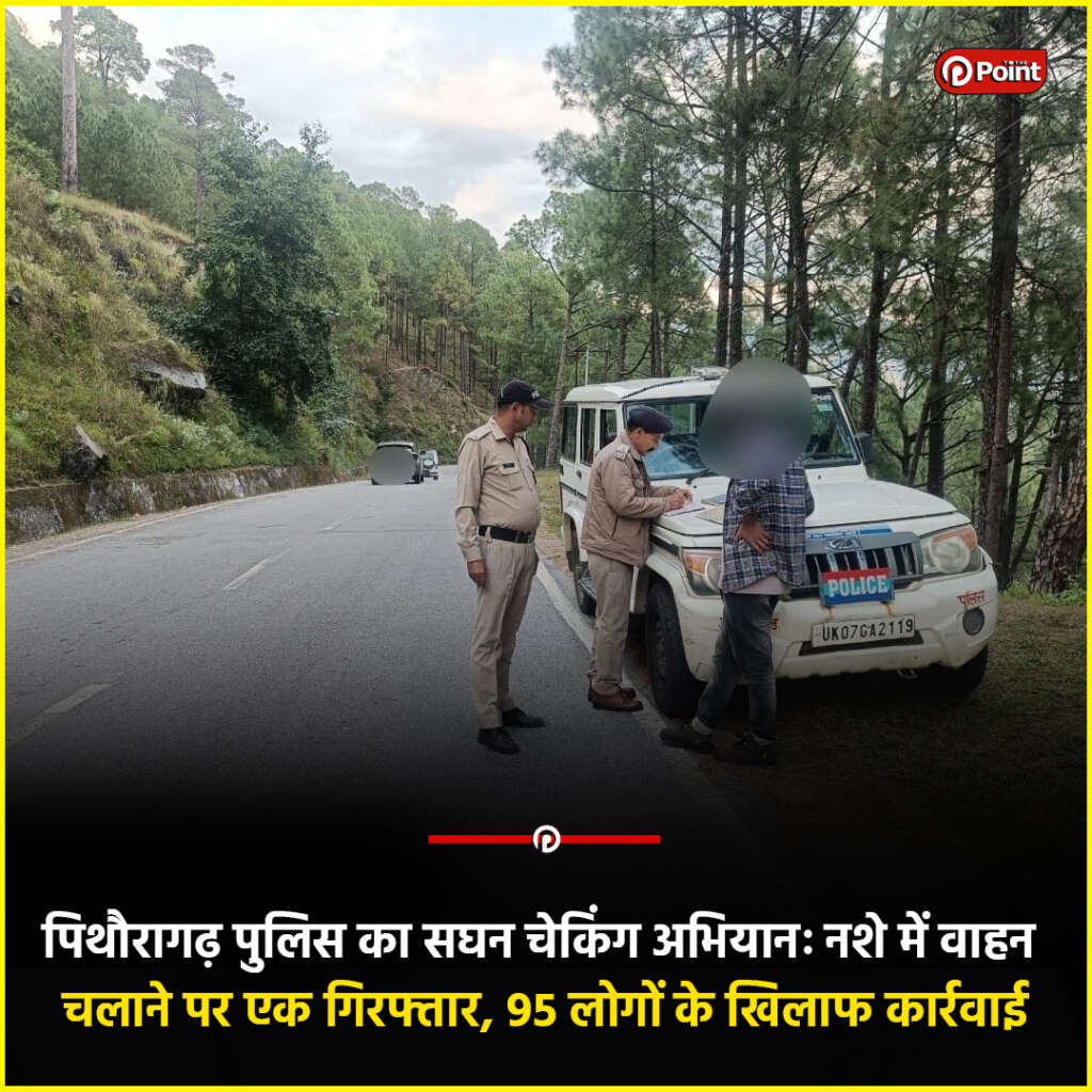 प्रभारी निरीक्षक कोतवाली पिथौरागढ़ ललित मोहन जोशी के नेतृत्व में पुलिस टीम ने वाहन चेकिंग के दौरान शराब के नशे में वाहन चला रहे आयुष चन्द पुत्र कैलाश चन्द्र निवासी बुंगासिलिंग, जाजरदेवल को गिरफ्तार कर उसका वाहन सीज किया।