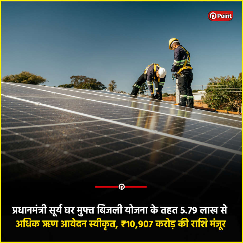 प्रधानमंत्री सूर्य घर मुफ्त बिजली योजना के तहत 5.79 लाख सेअधिक ऋण आवेदन स्वीकृत, ₹10,907 करोड़ की राशि मंजूर