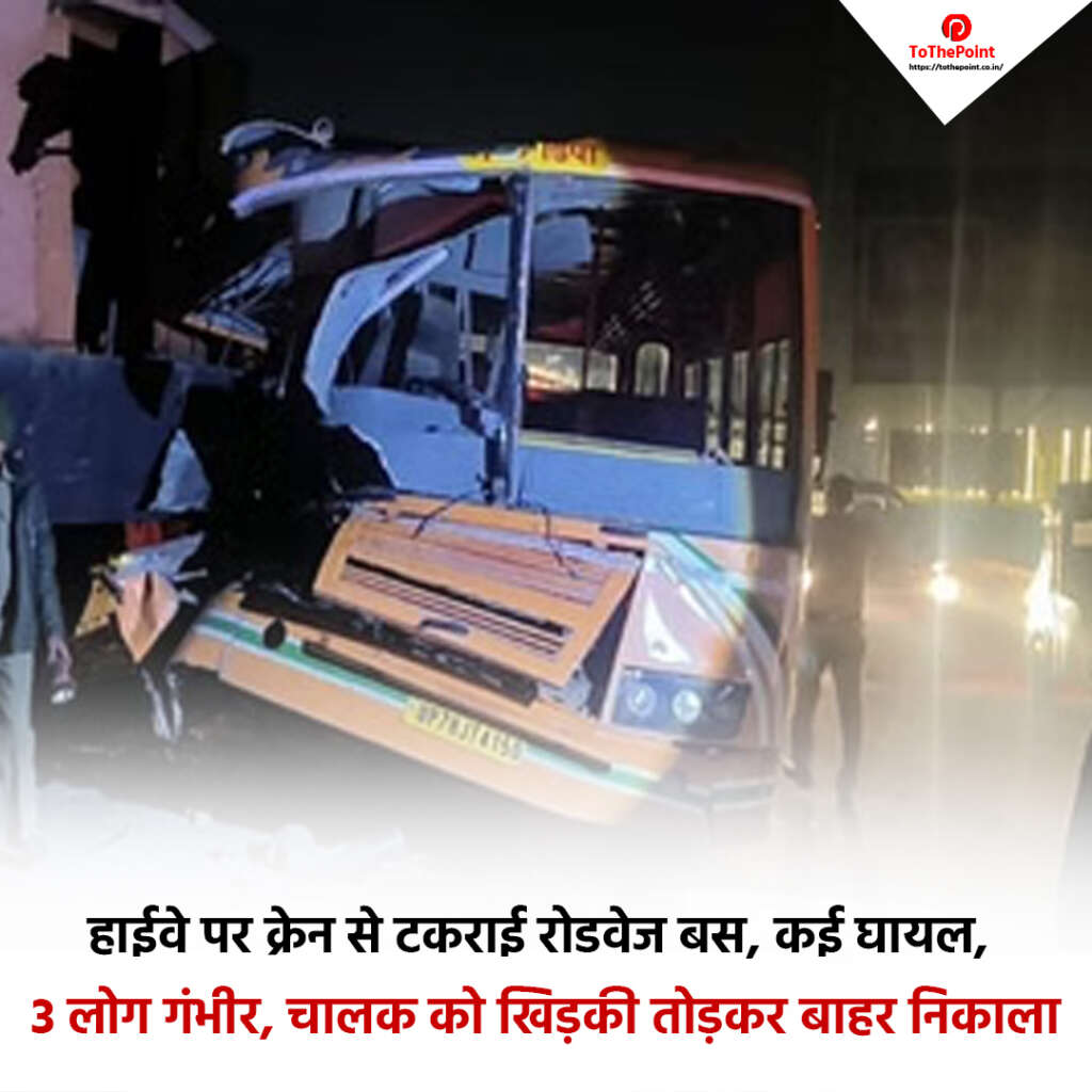 हाईवे पर क्रेन से टकराई रोडवेज बस, कई घायल,3 लोग गंभीर, चालक को खिड़की तोड़कर बाहर निकाला