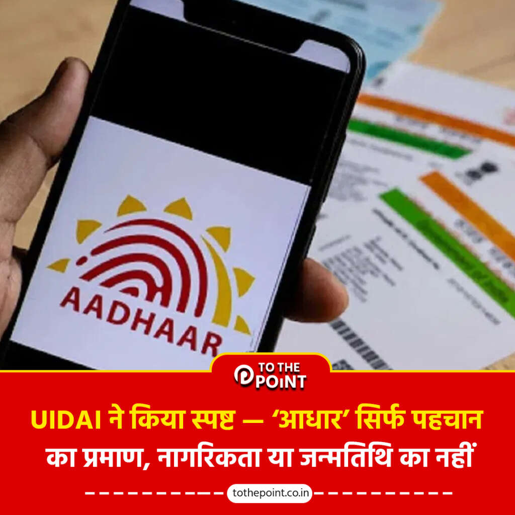 UIDAI ने किया स्पष्ट — ‘आधार’ सिर्फ पहचानका प्रमाण, नागरिकता या जन्मतिथि का नहीं
